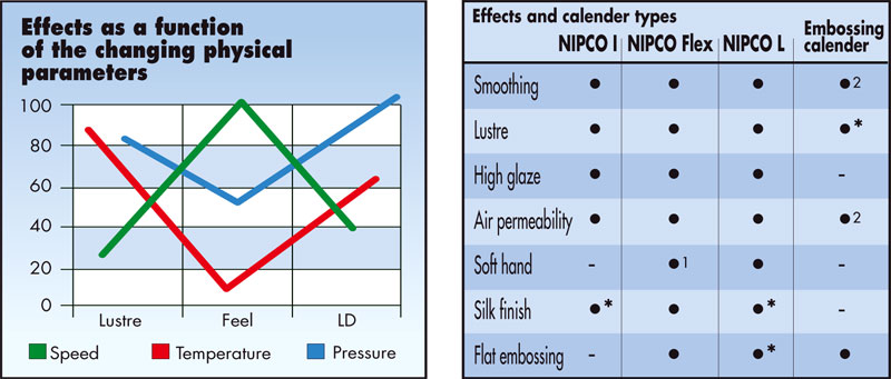 Elegant glazing and remarkable softness in handle: decreased pressure in the nip Steel/NIPCO™, same time increased pressure in the nip NIPCO™/Cotton.