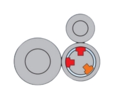 The hydrostatic support elements of our NIPCO™ L system are independently arranged in a 90° configuration, one active against a steel bowl, one active against a cotton bowl.
