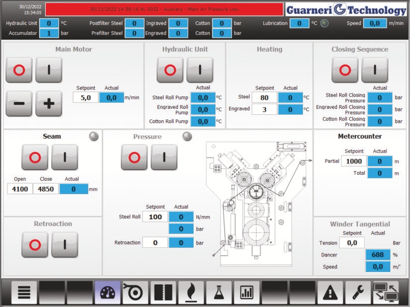- 16 different fabric passages, each pressure line individual controlled via proportional valves